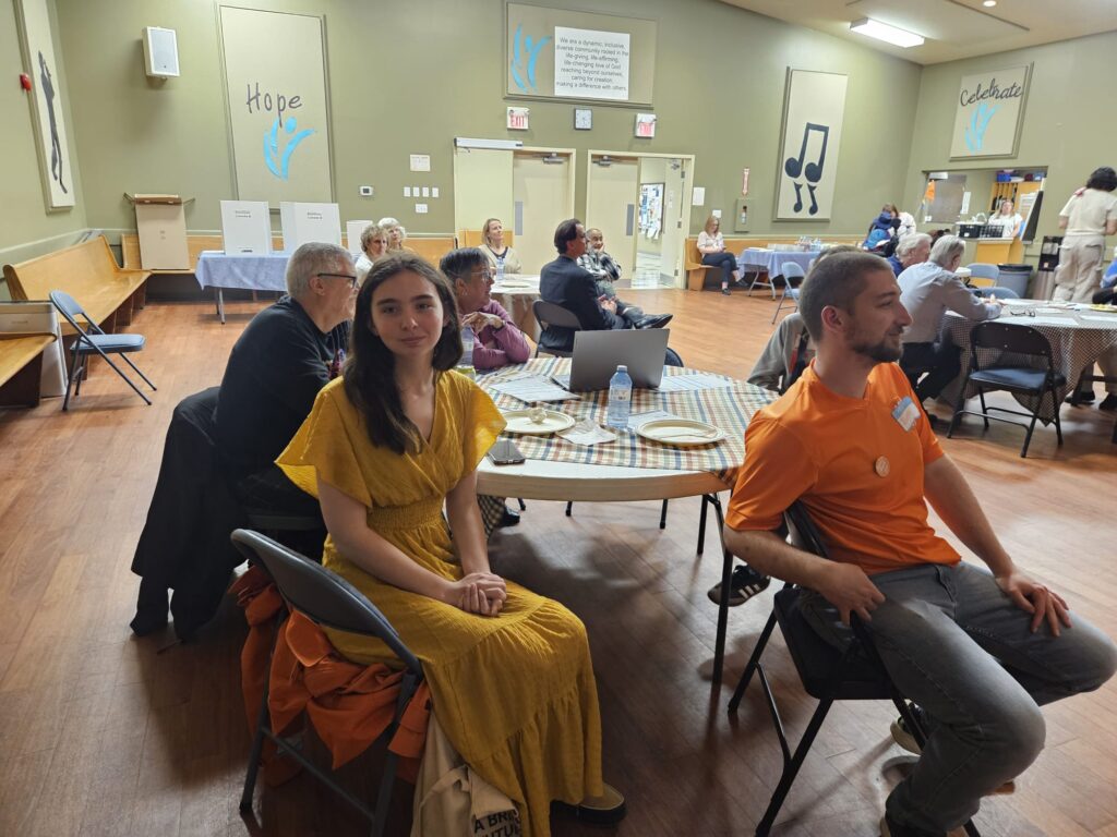 The event wasn’t entirely without political presence. Conservative candidate for Burlington Emily Brown, Burlington’s PPC candidate Michael Bator, Liberal and Milton incumbent candidate Adam van Koeverden, and Oakville East NDP candidate Hailey Ford were among those who attended. A representative from Karina Gould’s office was also said to be present. At just 20 years old, Hailey Ford is one of the youngest candidates running in the Halton region — if not the youngest — and stayed for the full session alongside Bator. Both engaged actively with residents on issues ranging from climate anxiety to affordable living and electoral reform.
