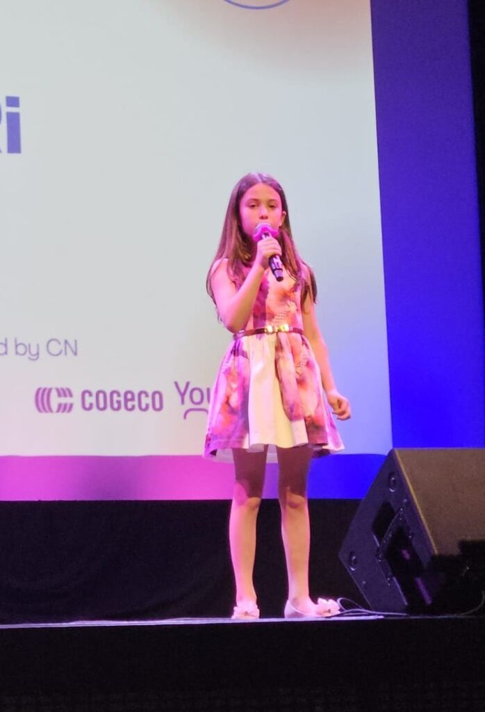 In another moving performance, students Mia Wong (grade 11, White Oaks Secondary), Elsa Ren (grade 8), and Emma Pelletier (grade 8), both from Post’s Corners Public School, delivered a powerful rendition of “Nu Er Qing,” a traditional Chinese piece. The trio blended piano, pipa (a Chinese string instrument), and bass clarinet. It was their first performance together, but they hope to continue collaborating.