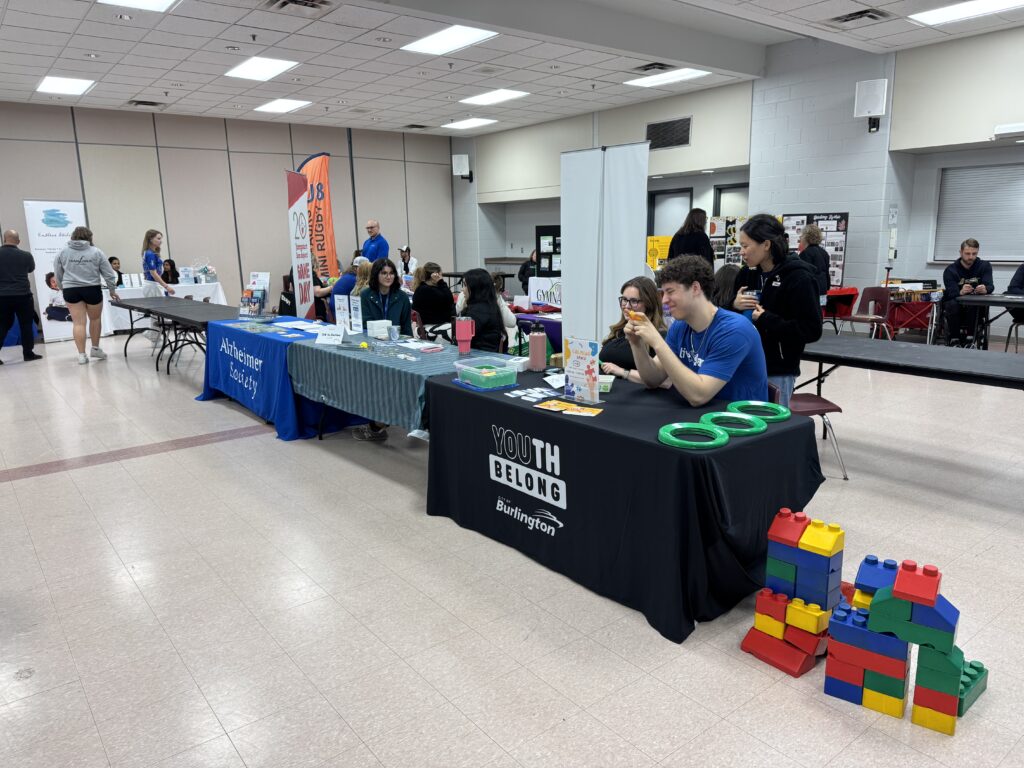 Booths were set up in a recreation hall, with a number of local organizations present, including the Burlington Lions Club, the Burlington Public Library, Student Theatre, Special Olympics, and the Art Gallery of Burlington (AGB).