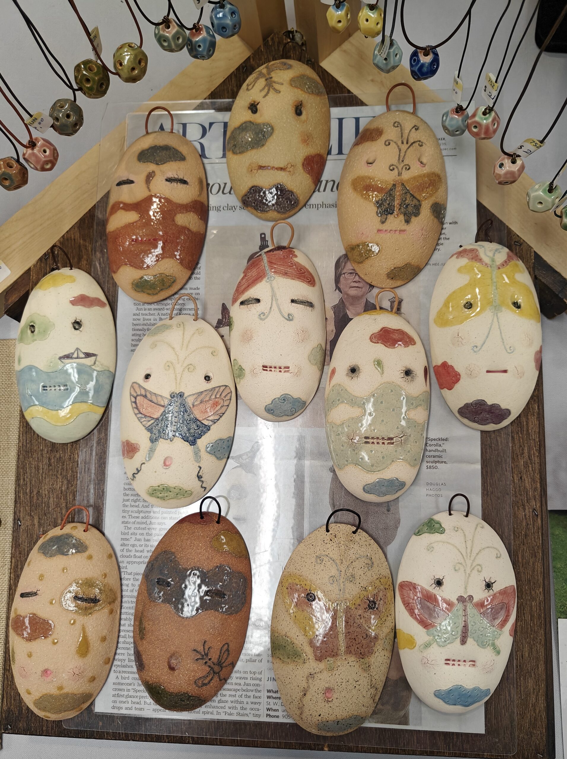 “Working with clay always calms me,” she says. “It helps me focus and communicate. I’ve worked to express my emotions and daily circumstances in clay, like writing a journal.” Her pieces, whether large-scale installations or intimate figurative forms, often resemble creatures or faces, avatars of memory and emotion.
