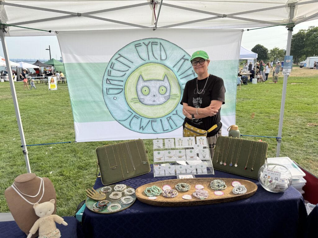 Lynn Dutton, the owner and creator behind jewelry line Green Eyed Kitty, spoke about what her craft means to her. “ I take pride in my jewelry because it’s all handmade, and I source my gemstones,” Dutton said. “I only use sterling silver and gold-filled.”