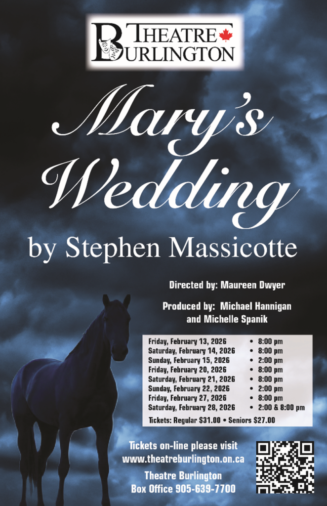 Around Valentine’s Day, people are always drawn towards love stories, new and old. Bumping into someone cute on the street, dating hijinks, long conversations, meeting the families, confronting rivals, and a wedding, always a wedding, at the end. In February 2026, Theatre Burlington on New Street will offer, as its first production of what is anticipated to be an eventful year of drama, a love story that weaves together true, tragic love with the process of grief, major historical events, poetry, and a bittersweet wedding. On February 13, 2026, the theatre will premiere its take on Canadian playwright Stephen Massicotte’s Mary’s Wedding, a poignant wartime tale that concerns two people who are, without a doubt, soulmates, but doomed to be separated by circumstances outside of their control. Tickets can be bought here.