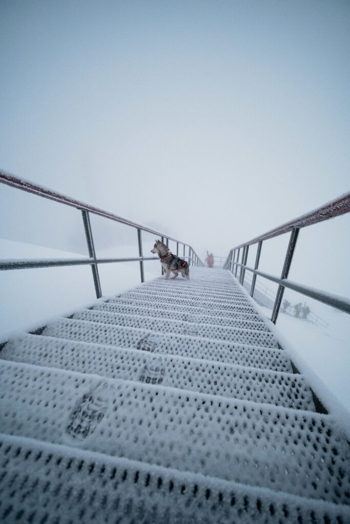 Stairs With the Frozen Steps in Winter