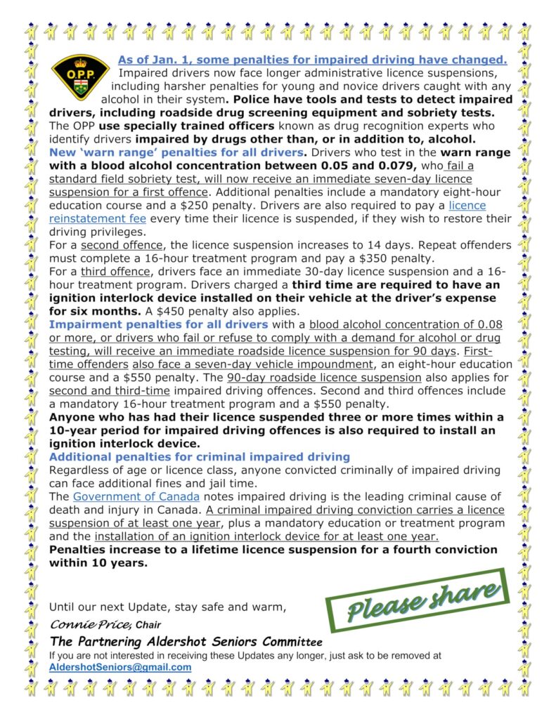 By Connie Price, Partnering Aldershot Seniors Committee Chair