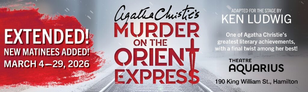 On March 4, 2026, Theatre Aquarius in Hamilton will be premiering their own production of the tale, arguably the tensest and most suspenseful train ride of all time. This version has been adapted for the stage by the respected American playwright Ken Ludwig and is directed by Morris Panych, a Canadian luminary. Actor Daniel Kash, who is officially making his debut on the Theatre Aquarius stage, is set to play Agatha Christie’s iconic mustachioed investigator. Tickets for this show can still be purchased on the Theatre Aquarius website.