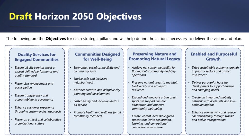 Horizon 2050’s vision statement is “Burlington is a community where nature is protected, growth is purposeful, and everyone belongs.”
