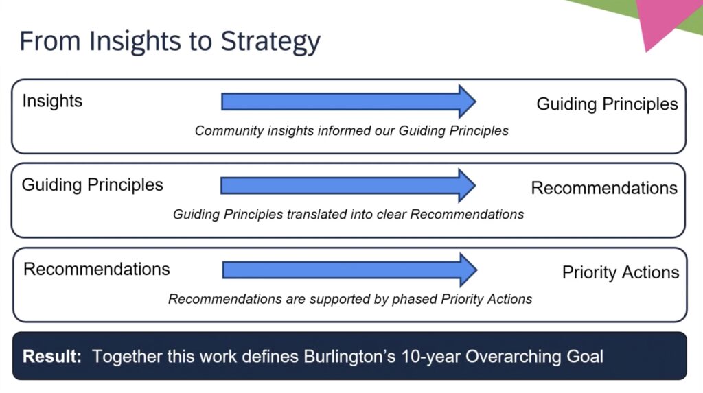 The city revealed the 10-year overarching goal of the plan: “To broaden the role of arts and culture in the City of Burlington beyond program and service delivery to support cultural placemaking, community wellbeing, and economic opportunity.”