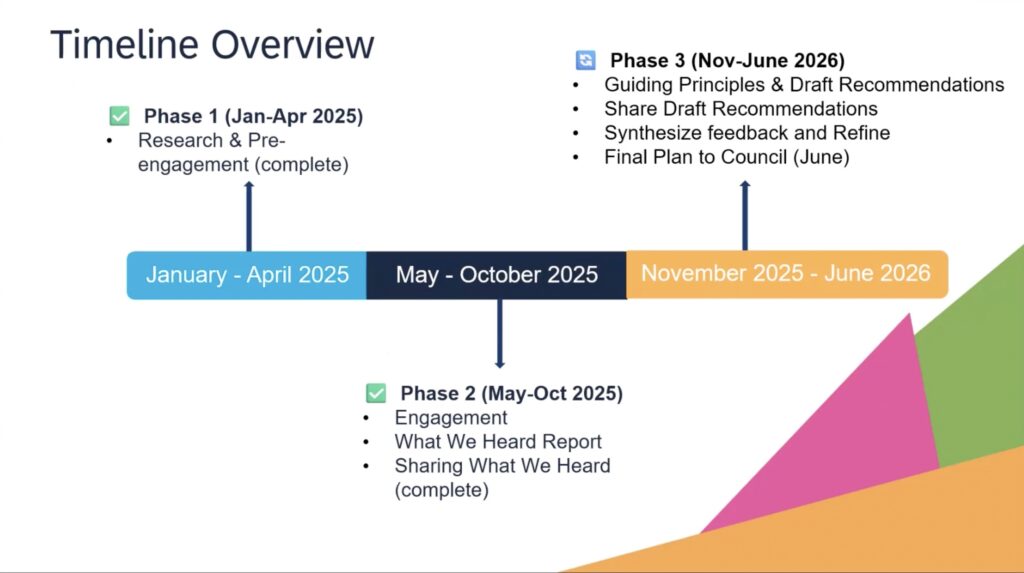 Community outreach began in May of last year and has included various workshops and pop-ups, as well as a survey that closed in August 2025.